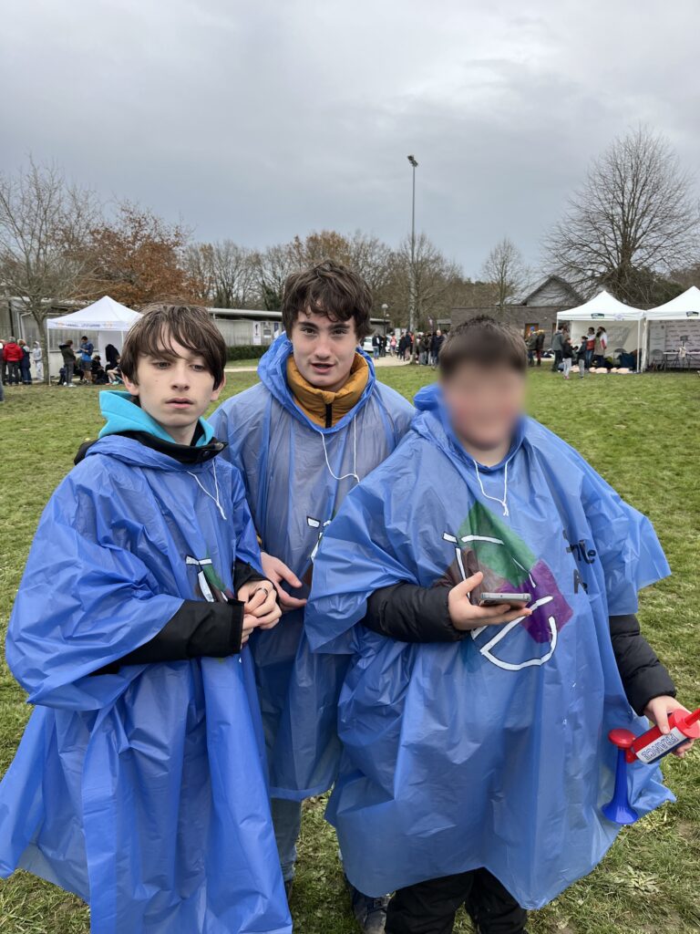Enfin trois autres élèves du dispositif, accompagnés de leur enseignante, sont venus encourager les copains et ont préparé le déplacement en décorant des ponchos avec le logo de Sainte Anne !