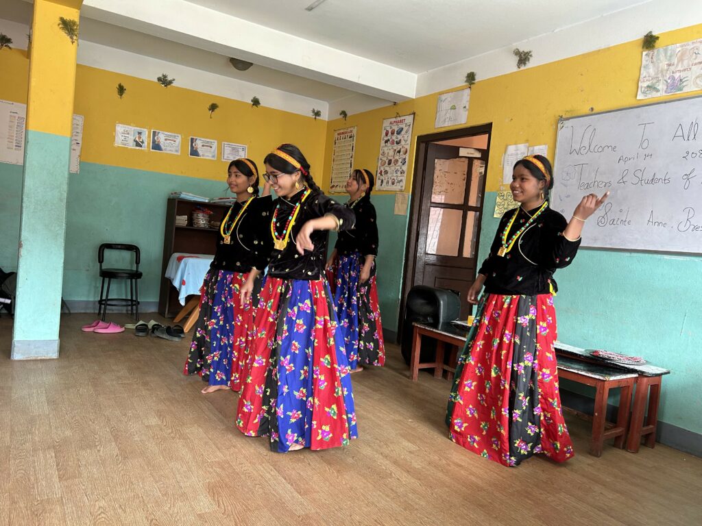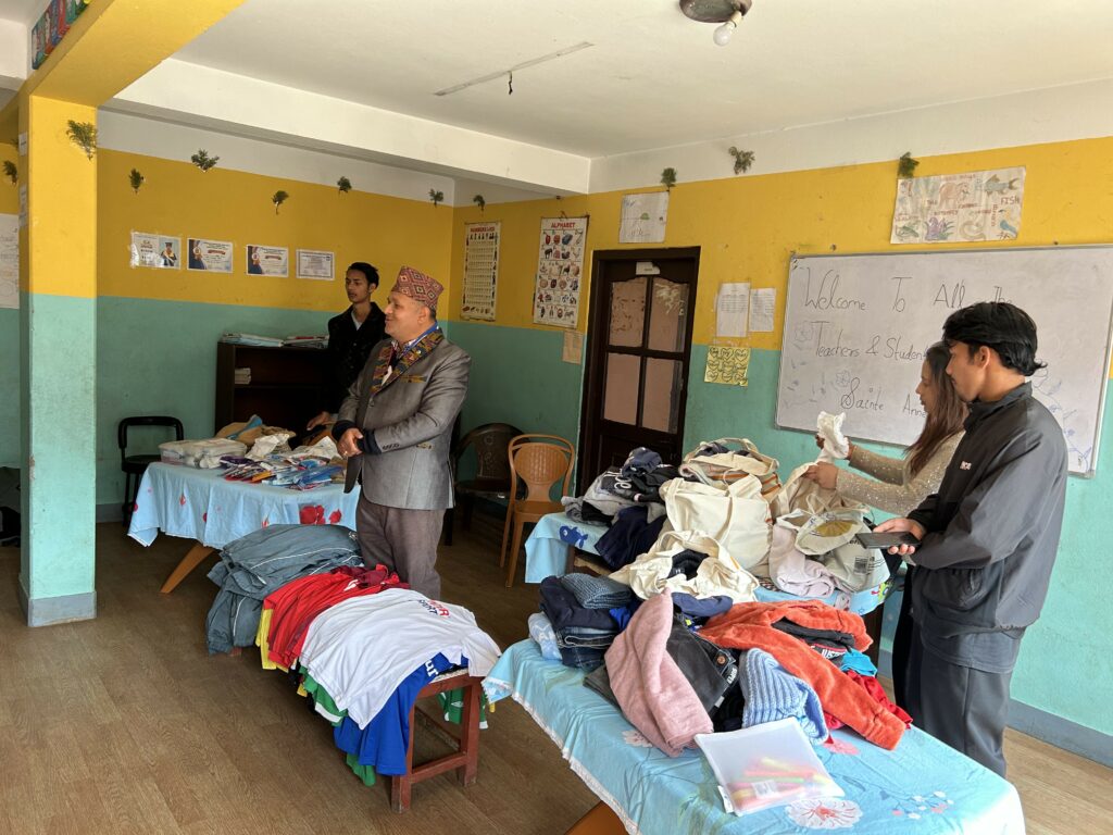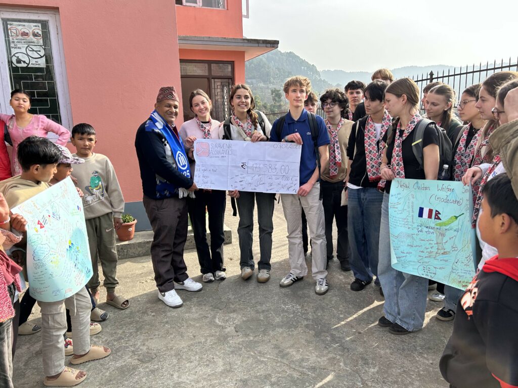 La visite de l’orphelinat a été un moment fort de la semaine. Nous avons pu y remettre les vêtements collectés et les produits d’hygiène que nous avons mis dans nos valises. Nous avons partagé un Dal Bhat local, des danses, des chants et du football avec les enfants. Le fond de dotation d’Arkea fait un don de 1000€ à l’association ASHA enfants du Népal, nous avons remis un chèque symbolique au directeur du foyer.